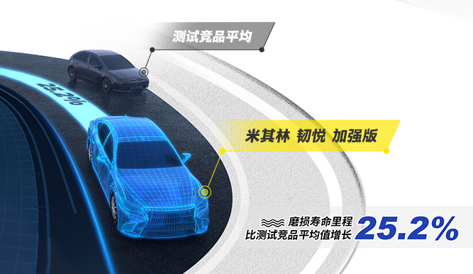 米其林 韌悅 加強版 ENERGY XM 2+,損壽命里程比測試競品平均值增長25.2%*