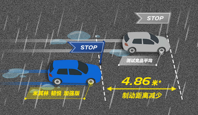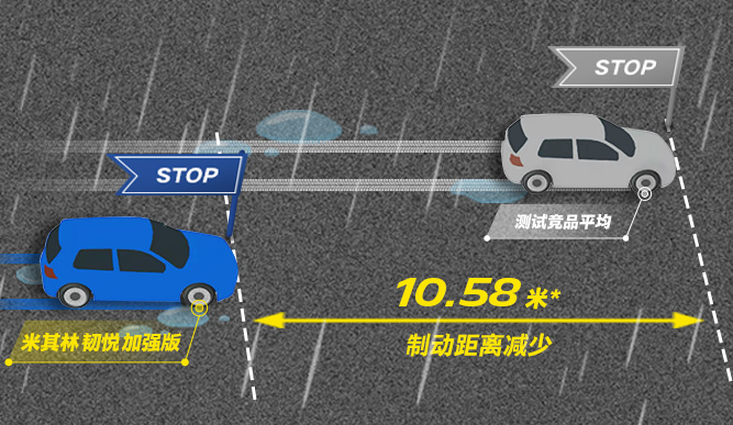 米其林 韌悅 加強版 ENERGY XM 2+,新胎濕地制動距離比測試競品平均值縮短4.86米*