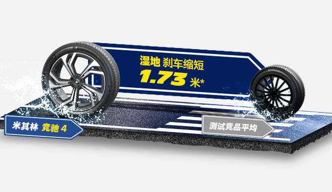 米其林 競馳 4 PILOT SPORT 4 濕地剎車距離比測試競品平均縮短 1.73 米*