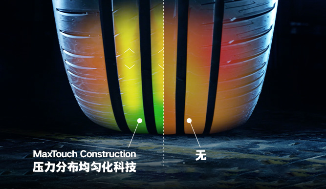 采用壓力分布均勻化科技MaxTouch Construction,提高輪胎的接地面積,并均勻分布瞬間加速,制動和轉(zhuǎn)彎在胎面上的應(yīng)力,保持卓越性能的同時,助力輪胎磨耗里程。