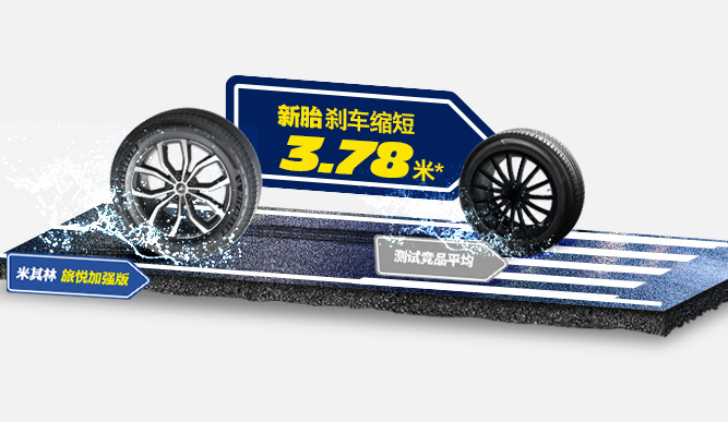 米其林 旅悅 加強版 PRIMACY SUV+ 濕地剎車距離比測試競品平均值縮短 3.78 米*